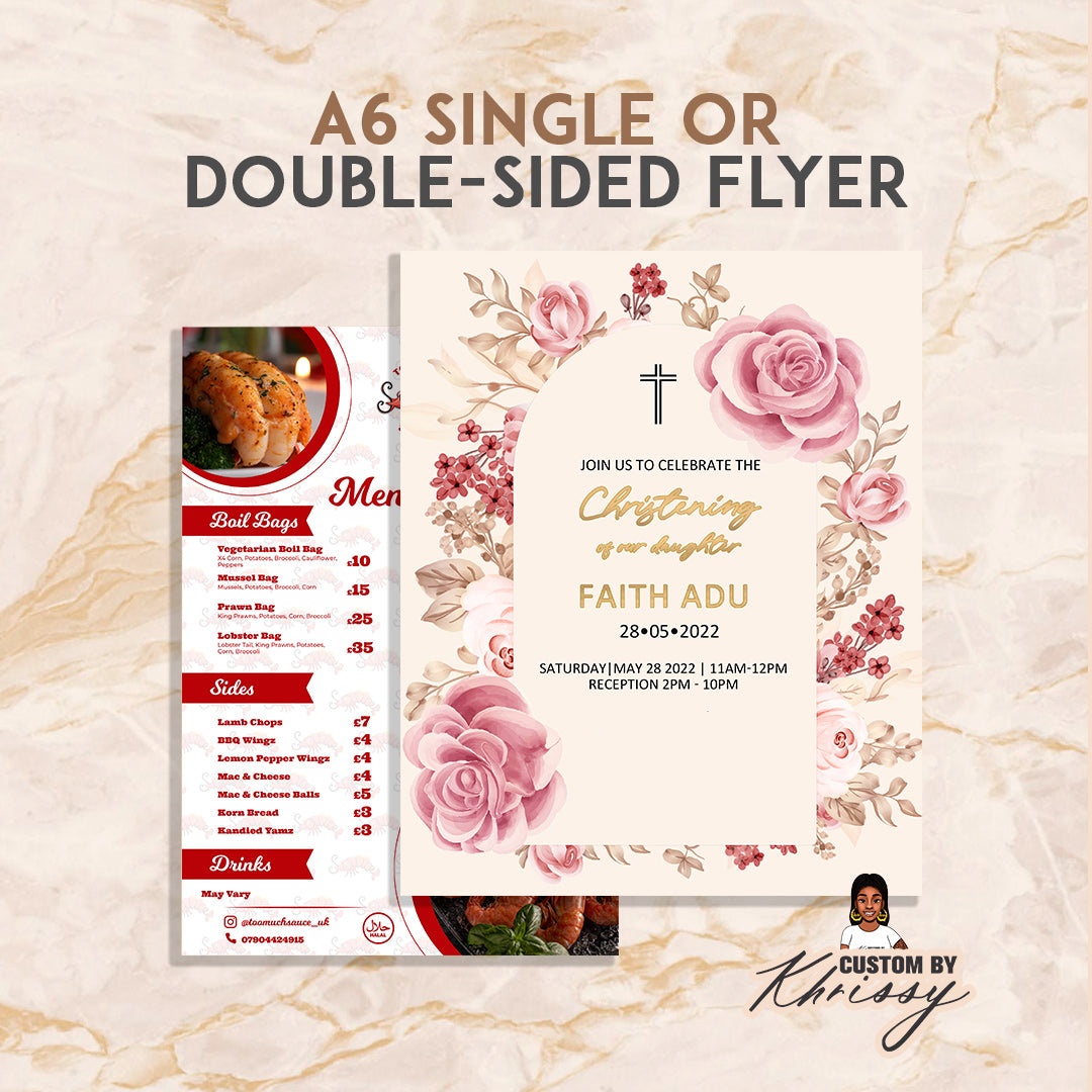 A6 Flyers ❤ Single or Double-Sided Print.❤ Full Edge-to-Edge Print❤ Both portrait and landscape designs...