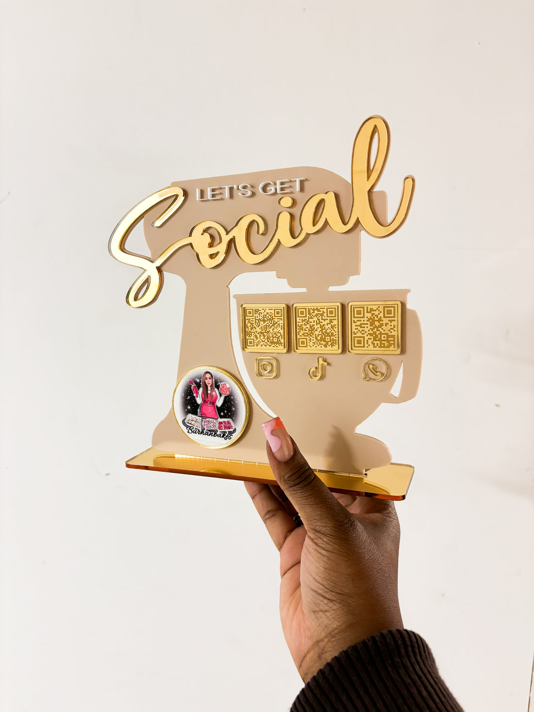 BAKER'S MIXER LET'S GET SOCIAL SIGN | 3 QR CODES