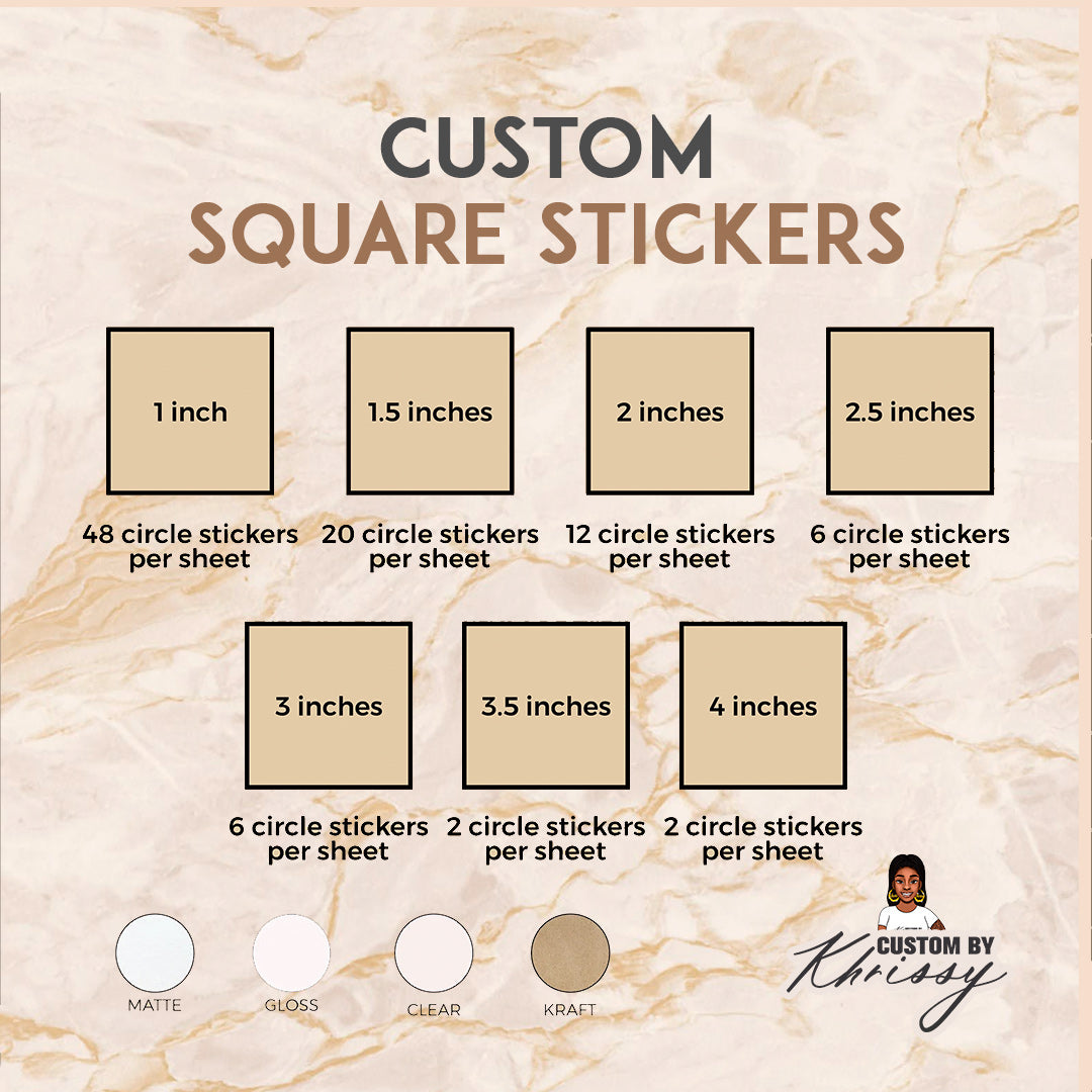 Our stickers can also be cut into different shapes, circles, squares, rectangles etc, just ask!